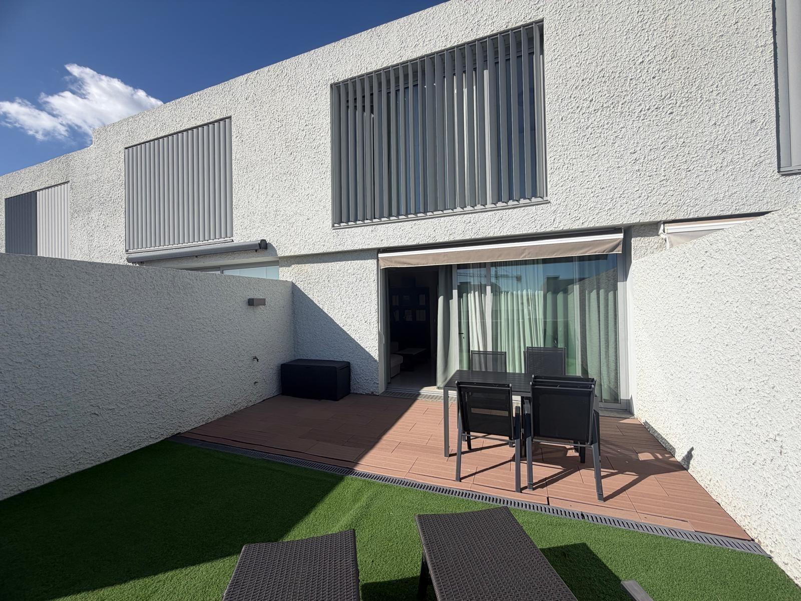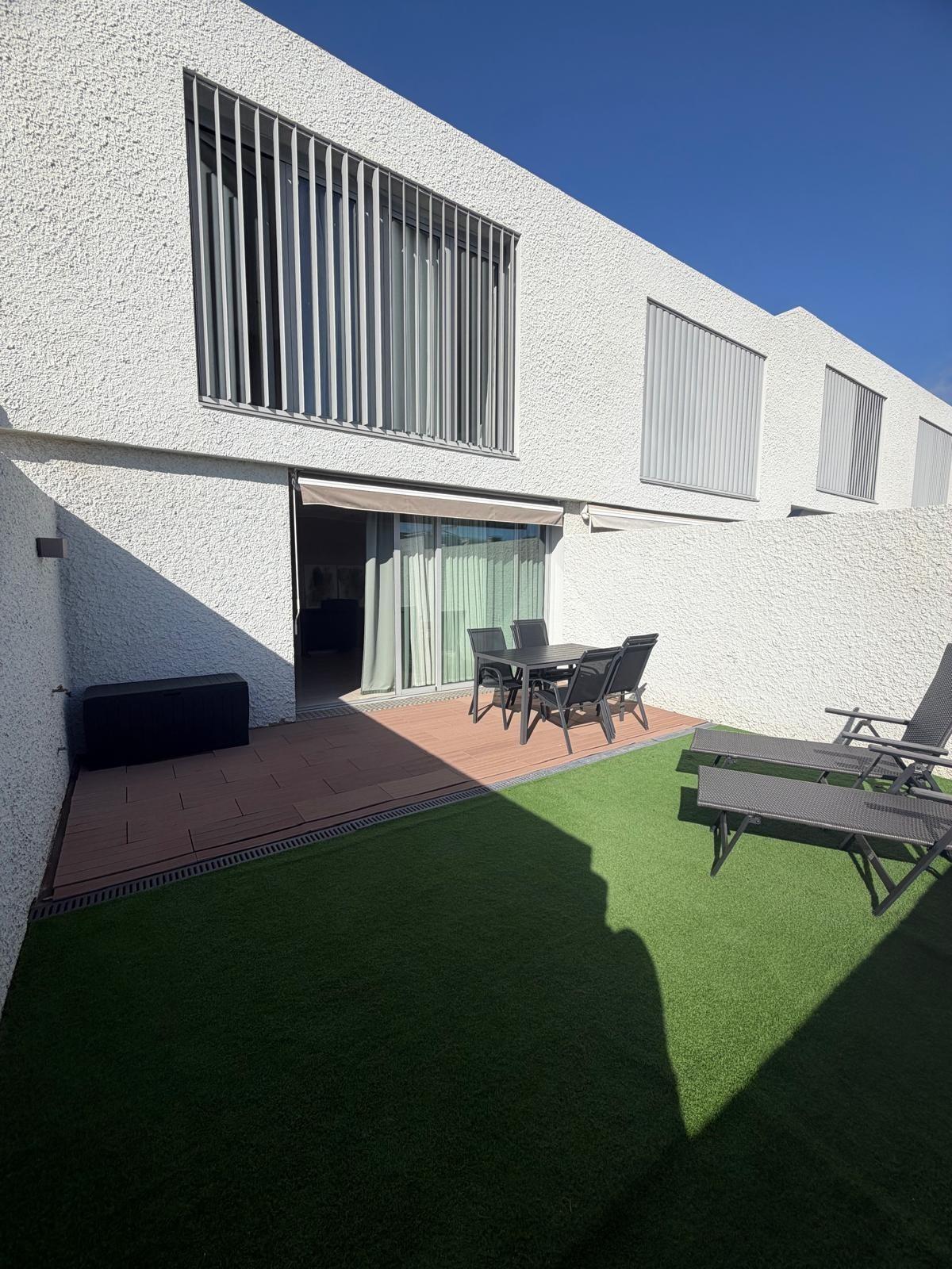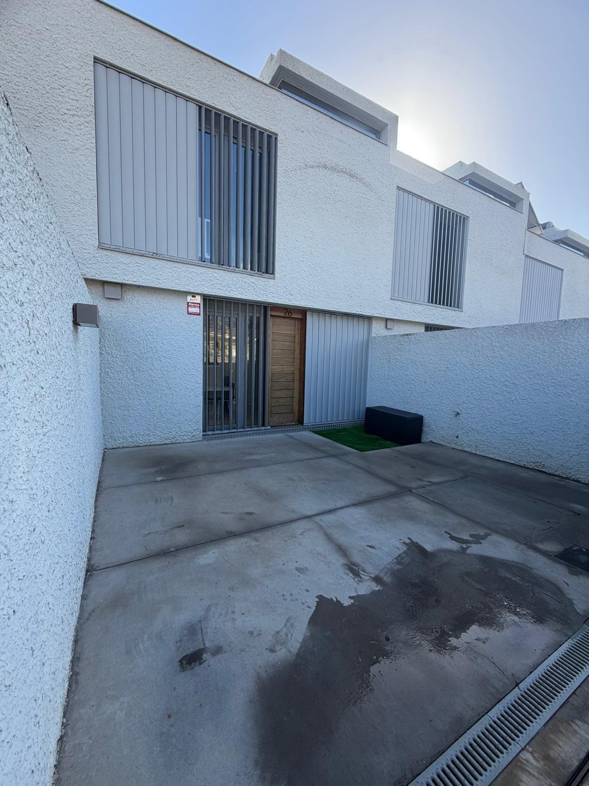 Se presenta a la venta este moderno Chalet adosado ubicado en la urbanización Chinguaro, un lugar privilegiado dentro del municipio de Güímar, conocido por su excelente clima durante todo el año. La vivienda cuenta con dos plantas y ofrece una opción adicional para desarrollar una planta baja de hasta 100 m2 que puede ser adaptada según las necesidades particulares del propietario. El inmueble se entrega completamente amueblado y equipado, listo para habitar.~~En la primera planta encontramos un acogedor patio delantero que incluye plaza de aparcamiento con puerta corrediza automatizada; además dispone de cocina totalmente equipada, amplio salón conectado a terraza ideal para disfrutar del buen tiempo canario; también hay un baño completo con plato ducha y una habitación auxiliar que puede funcionar como despacho o zona lúdica.~~La segunda planta alberga tres habitaciones luminosas: destaca uno destinado actualmente como vestidor/lavandería pero fácilmente adaptable nuevamente a dormitorio si así lo requiere el nuevo propietario. Dos baños completos complementan esta área residencial siendo uno –en suite– asociado al cuarto principal.~~Este chalet posee grandes ventanales permitiendo gran entrada luz natural creando ambientes cálidos e ideales en toda su extensión. Equipamientos adicionales incluyen aire acondicionado instalado en la habitación principal y además cuenta con pre-instalación de aire acondicionado en toda la vivienda para ubicar otros splits donde desee el nuevo propietario; también es compatible la instalación de placas solares maximizando eficiencia energética y espacio óptimo para el almacenamiento de las baterías, un activo altamente valorable hoy en día.~La vivienda cuenta con depósito de agua de reserva que proporciona mayor tranquilidad operacional ante imprevistos climáticos locales.~ ~El inmueble se sitúa dentro de un entorno agradable y tranquilo donde proliferan servicios esenciales tales como supermercados , farmacias , tiendas bancos cafeterías colegios piscinas, centros salud etc., todos ellos accesibles a menos de dos minutos.~~También favorece la proximidad a la parada de bus y su conexión a la autopista sur y el centro de Santa Cruz. Este hogar no solo representa comodidad sino también una inteligente inversión inmobiliaria considerando el crecimiento de la zona y la revalorización que esto supone.~~¡No dejes pasar la oportunidad y ven a conocerla!~