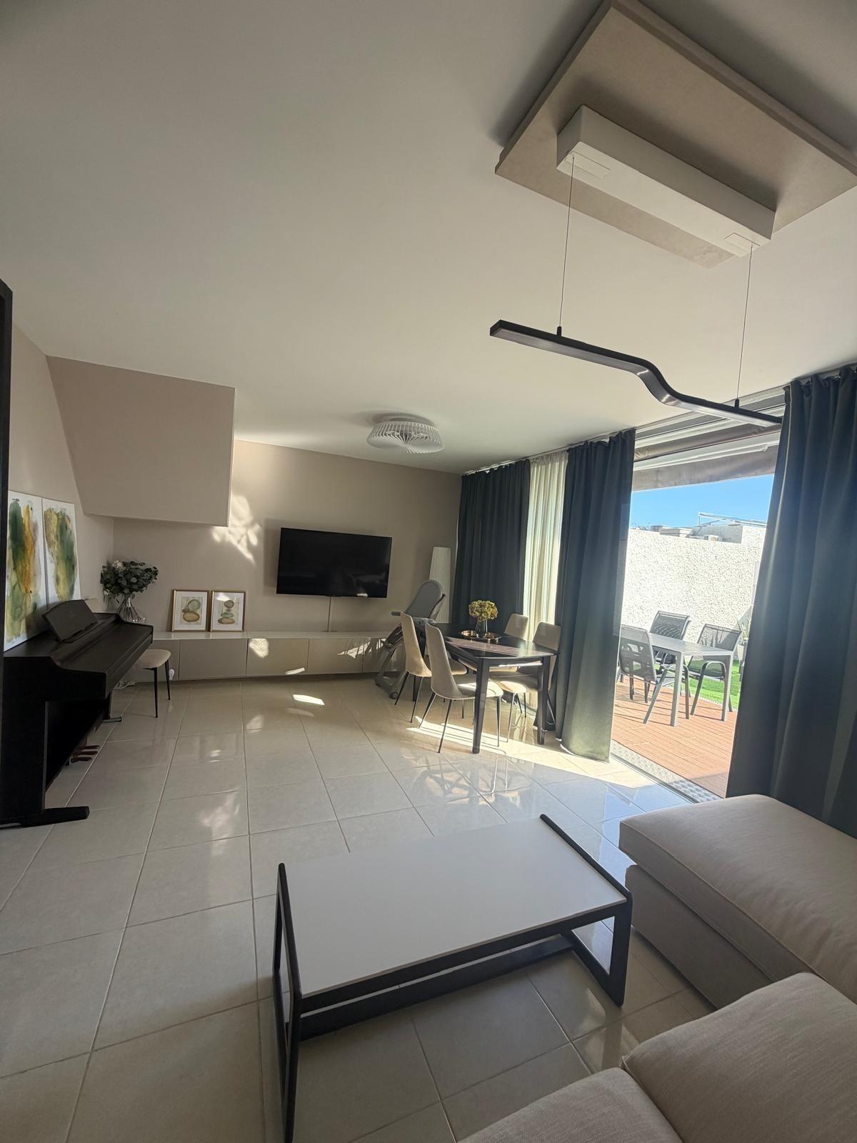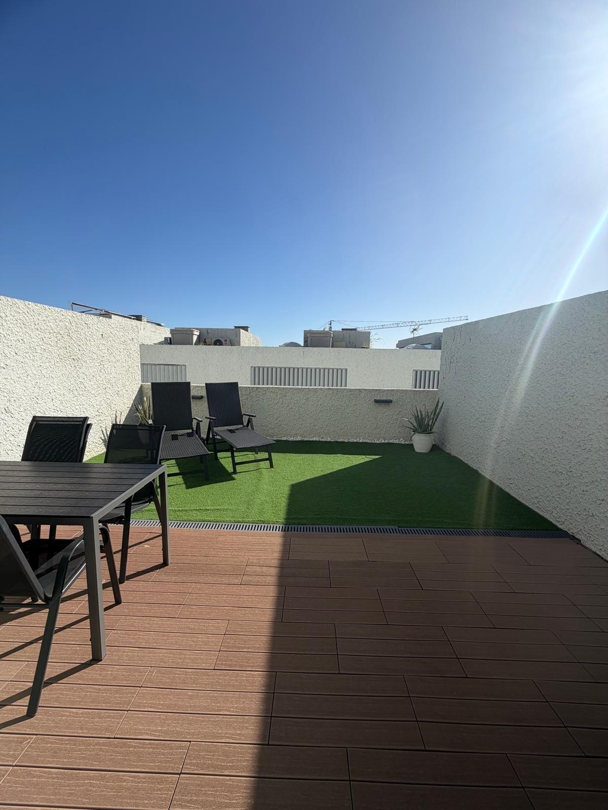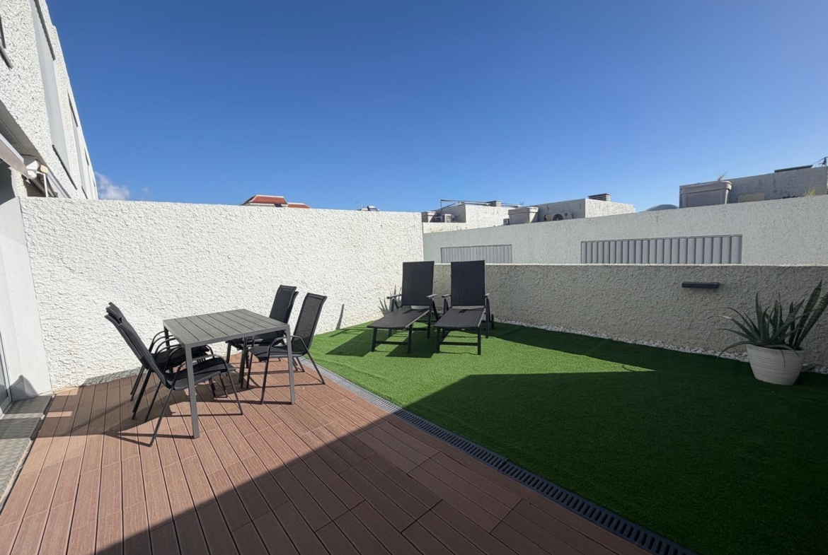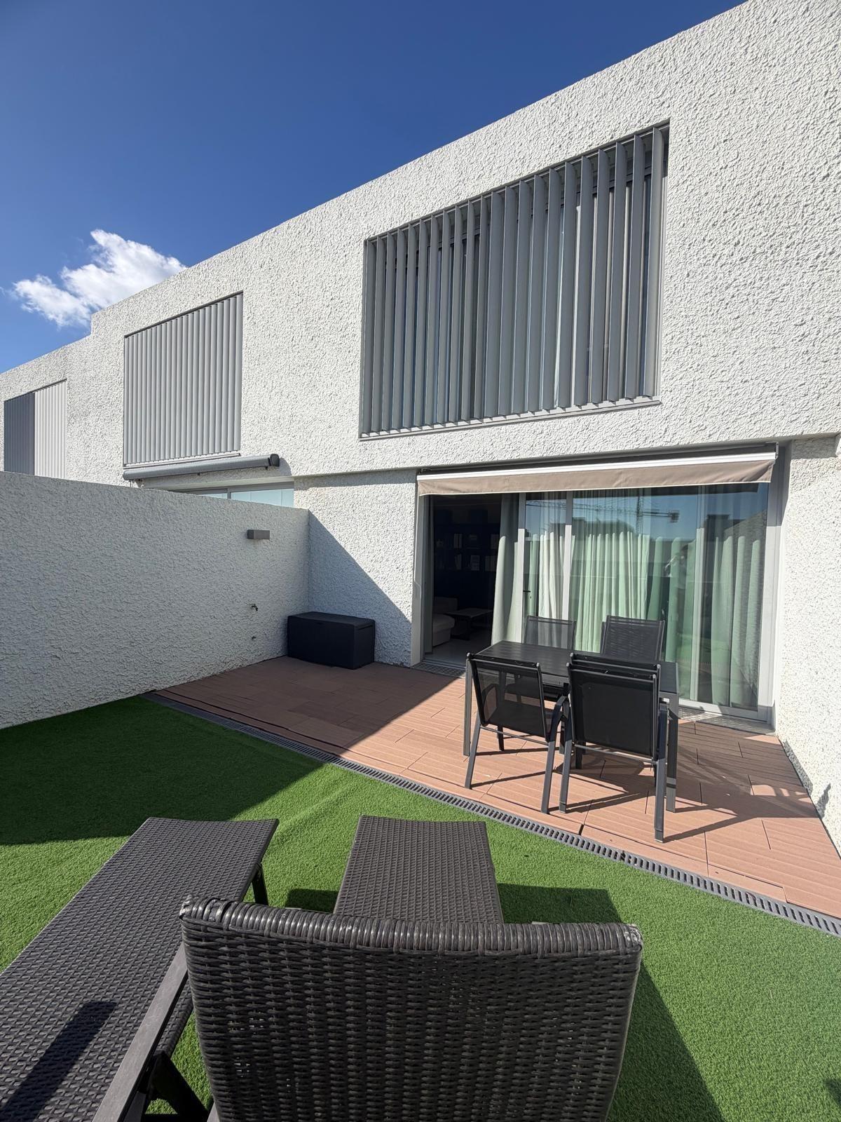 Se presenta a la venta este moderno Chalet adosado ubicado en la urbanización Chinguaro, un lugar privilegiado dentro del municipio de Güímar, conocido por su excelente clima durante todo el año. La vivienda cuenta con dos plantas y ofrece una opción adicional para desarrollar una planta baja de hasta 100 m2 que puede ser adaptada según las necesidades particulares del propietario. El inmueble se entrega completamente amueblado y equipado, listo para habitar.~~En la primera planta encontramos un acogedor patio delantero que incluye plaza de aparcamiento con puerta corrediza automatizada; además dispone de cocina totalmente equipada, amplio salón conectado a terraza ideal para disfrutar del buen tiempo canario; también hay un baño completo con plato ducha y una habitación auxiliar que puede funcionar como despacho o zona lúdica.~~La segunda planta alberga tres habitaciones luminosas: destaca uno destinado actualmente como vestidor/lavandería pero fácilmente adaptable nuevamente a dormitorio si así lo requiere el nuevo propietario. Dos baños completos complementan esta área residencial siendo uno –en suite– asociado al cuarto principal.~~Este chalet posee grandes ventanales permitiendo gran entrada luz natural creando ambientes cálidos e ideales en toda su extensión. Equipamientos adicionales incluyen aire acondicionado instalado en la habitación principal y además cuenta con pre-instalación de aire acondicionado en toda la vivienda para ubicar otros splits donde desee el nuevo propietario; también es compatible la instalación de placas solares maximizando eficiencia energética y espacio óptimo para el almacenamiento de las baterías, un activo altamente valorable hoy en día.~La vivienda cuenta con depósito de agua de reserva que proporciona mayor tranquilidad operacional ante imprevistos climáticos locales.~ ~El inmueble se sitúa dentro de un entorno agradable y tranquilo donde proliferan servicios esenciales tales como supermercados , farmacias , tiendas bancos cafeterías colegios piscinas, centros salud etc., todos ellos accesibles a menos de dos minutos.~~También favorece la proximidad a la parada de bus y su conexión a la autopista sur y el centro de Santa Cruz. Este hogar no solo representa comodidad sino también una inteligente inversión inmobiliaria considerando el crecimiento de la zona y la revalorización que esto supone.~~¡No dejes pasar la oportunidad y ven a conocerla!~